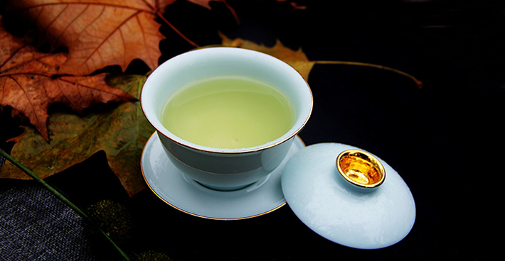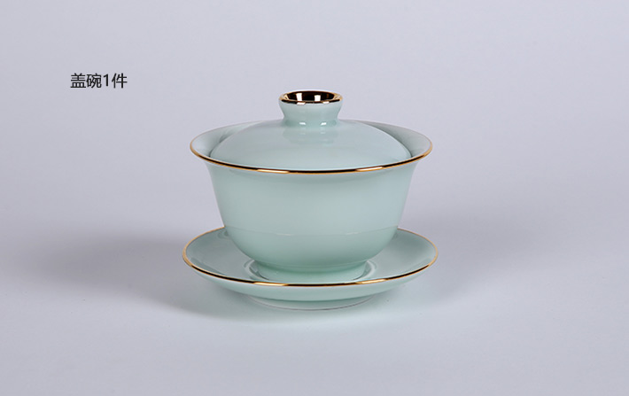 9頭全手工青釉茶具金鑲玉