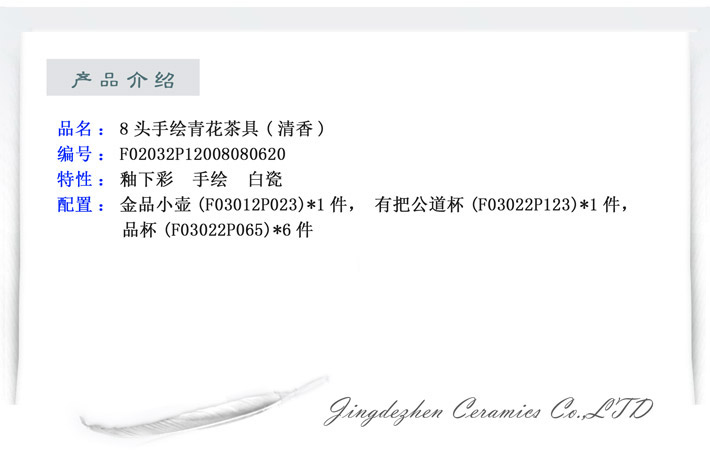 8頭手繪青花茶具(清香)