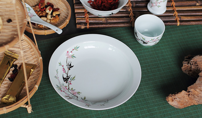 22頭青釉中餐具--燕子桃花